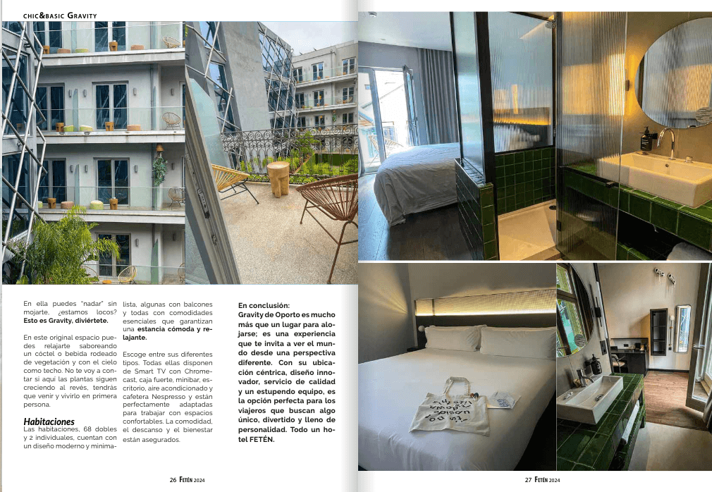 En conclusión: Gravity de Oporto es mucho más que un lugar para alojarse; es una experiencia que te invita a ver el mundo desde una perspectiva diferente. Con su ubicación céntrica, diseño innovador, servicio de calidad y un estupendo equipo, es la opción perfecta para los viajeros que buscan algo único, divertido y lleno de personalidad. Todo un hotel FETÉN.