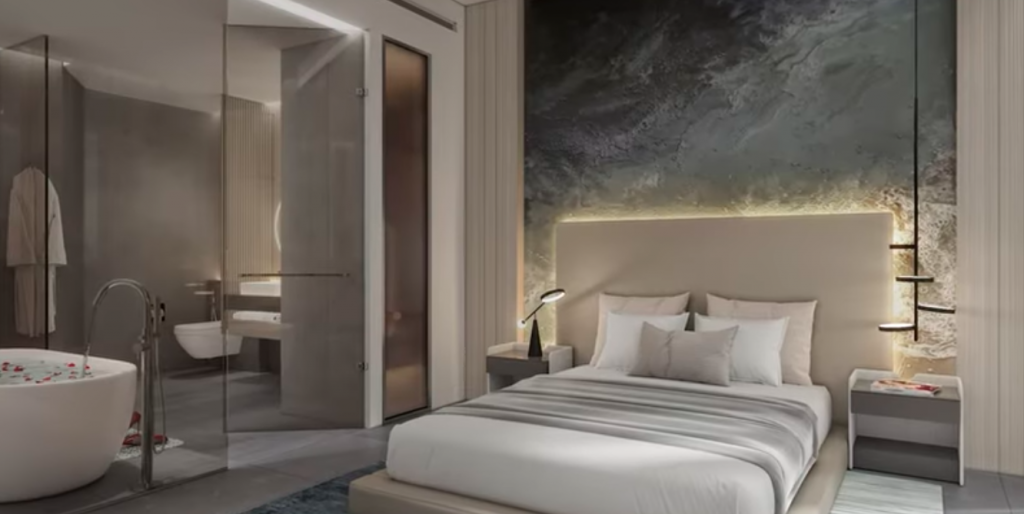 El edificio se levanta con una silueta esbelta y contemporánea que se integra en el skyline de la Marina. Contará con más de 1.000 habitaciones y suites, un mirador panorámico en el piso 81, y una piscina infinita a 300 metros de altura, con vistas que dominarán todo el horizonte del Golfo Pérsico.