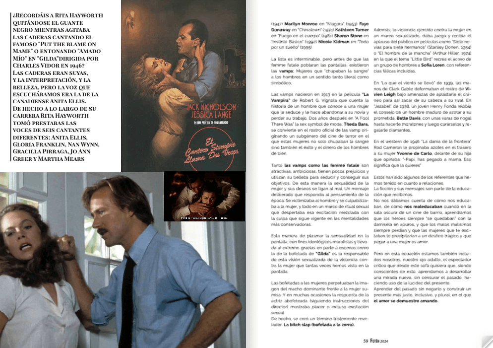Una vez más nos sentamos en este sofá para disfrutar del cine clásico, pero esta vez quiero ponerme un poco autocrítico. Me gustaría analizar lo que nos provocaba la escena de la bofetada en Gilda, dirigida por Charles Vidor en 1946.