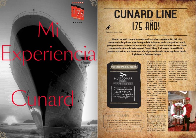Mucho se está comentando estos días sobre la [mks_icon icon=”fa-external-link” color=”#dd3333″ type=”fa”]celebración del 175 aniversario del primer viaje inaugural del Britannia de la compañía [mks_icon icon=”fa-external-link” color=”#dd3333″ type=”fa”] Cunard, pero yo me centraré en sus barcos del siglo XXI, y concretamente en el barco más emblemático de este siglo el Queen Mary 2, el mayor transatlántico jamás construido, y el único que aún sigue realizando rutas regulares desde Inglaterra a Estados Unidos.