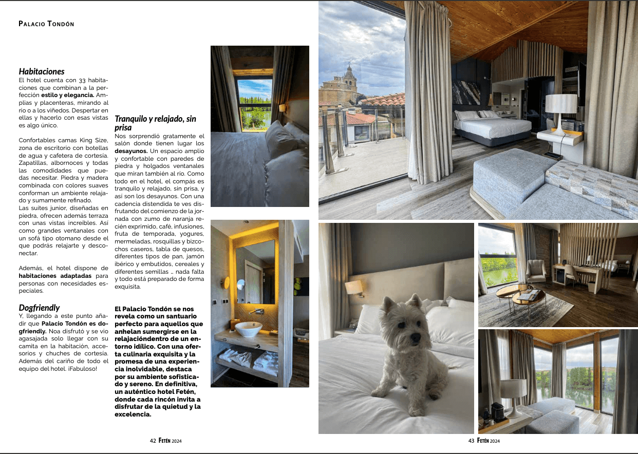 El Palacio Tondón también piensa en nuestros mejores amigos: es Hotel dogfriendly. Los perros son bienvenidos y disfrutan de su propio kit de amenities con accesorios y chuches de cortesía.